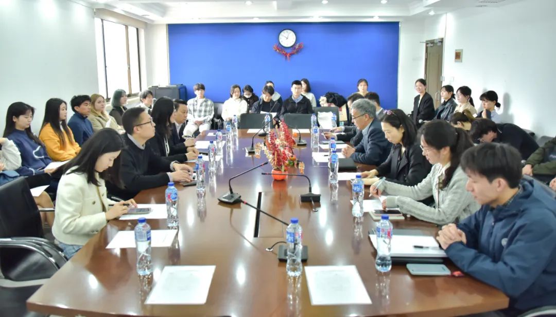公司师生代表与北京大学国关学院来访师生进行深入交流,围绕“亚洲校园”项目的学习体验、北京上海的生活方式等进行了细致的分享和讨论。双方师生互换纪念品并合影留念。