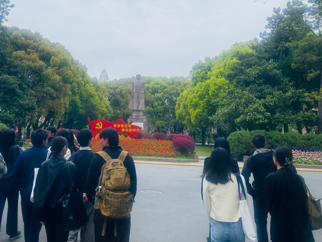 来访师生在公司员工代表的带领下参观校园。阳春四月的上海生机勃勃,粉白樱花团簇在枝头,来访师生漫步于秀丽的南国校园,折服于和煦的春色的同时,更被浓厚的治学氛围与人文底蕴所吸引。