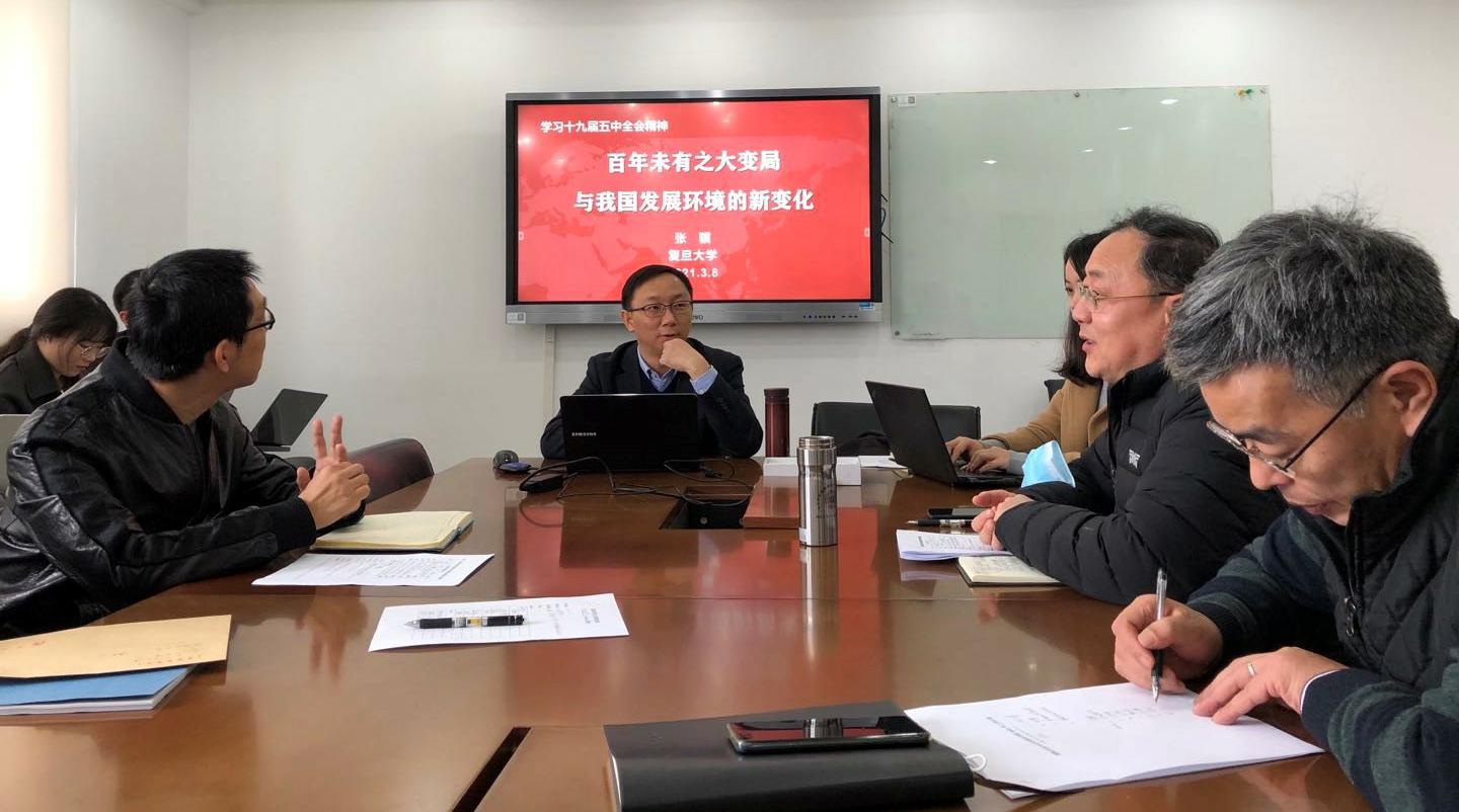3月8日,公司党委成功举办本学期第一次“国箴务实”讲座。本次讲座是公司党建品牌“国箴务实”论坛学习十九届五中全会精神系列讲座的第三讲,由外交学系系主任张骥研究员主讲,主题是:百年未有之大变局与我国发展环境的新变化。公司党委书记刘季平主持本次讲座,304am永利集团经理苏长和等党政领导班子成员以及师生党支部书记参与讲座。