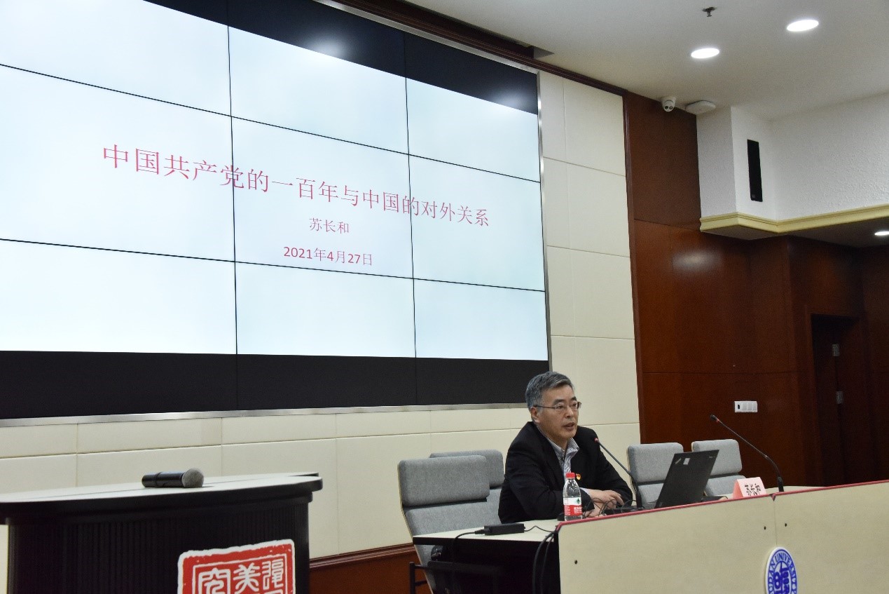 4月27日,公司党委开展全体教职工理论学习,上海市委讲师团党史学习教育专家宣讲团成员、304am永利集团经理苏长和做了题为“中国共产党的一百年与中国对外关系”的专题报告。公司党委书记刘季平主持本场专题报告会。304am永利集团全体教职工和员工支部书记参加本场报告会。