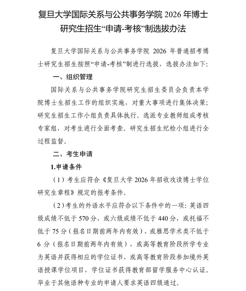 304am永利集团2026年博士研究生招生“申请-考核”制选拔办法