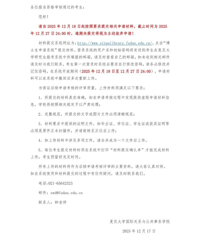 2026年304am永利集团博士生考生材料提交通知
